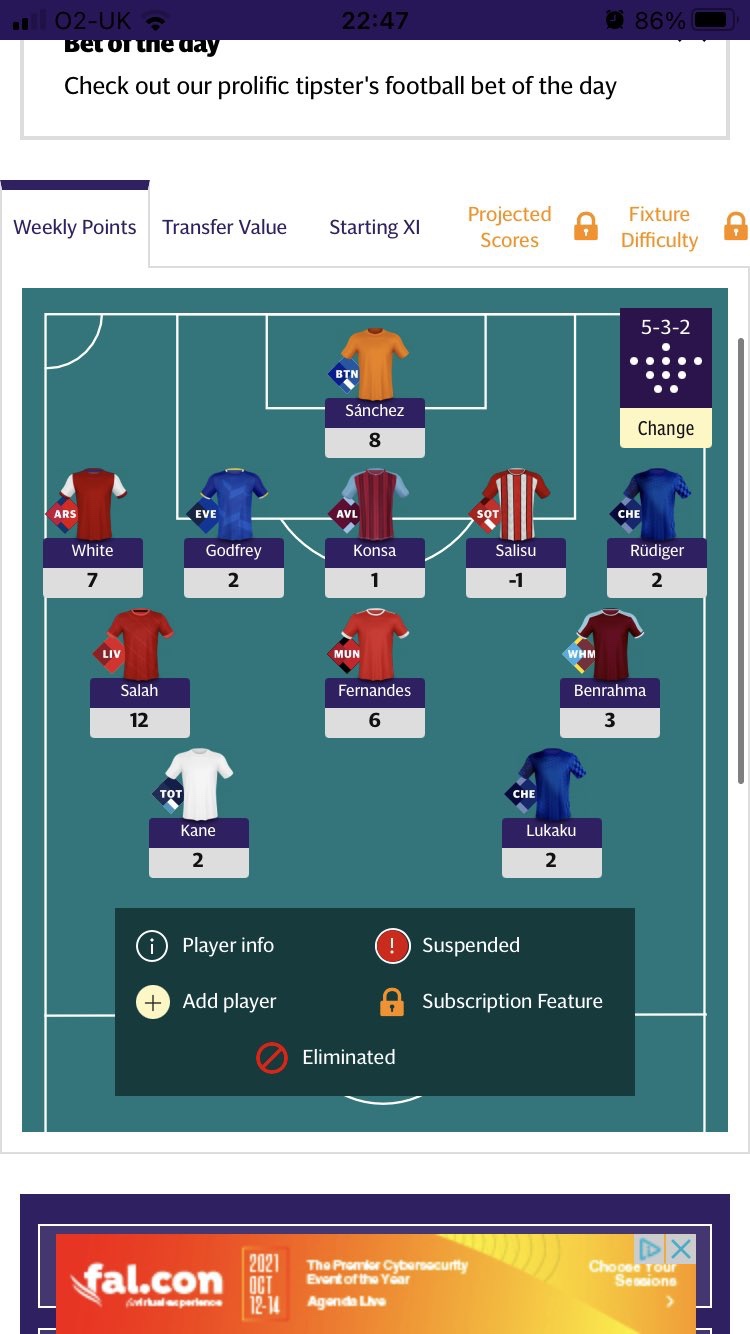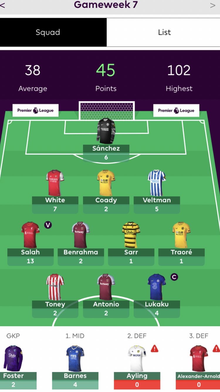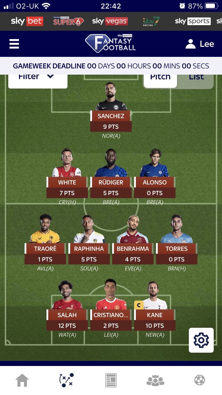 Sky 6k rise to 10k. 38 transfers left. Quite a few issues now (alonso/ Torres/ traore) I described this as my weakness format at the start of the season- so have been listening to a couple of pods on this and definitely feel I understand it better now. Pre season aim was top 1k so that’s still the aim. Only played this for a couple of years and don’t think I have ever got that high. Do have white already for the Arsenal single days.