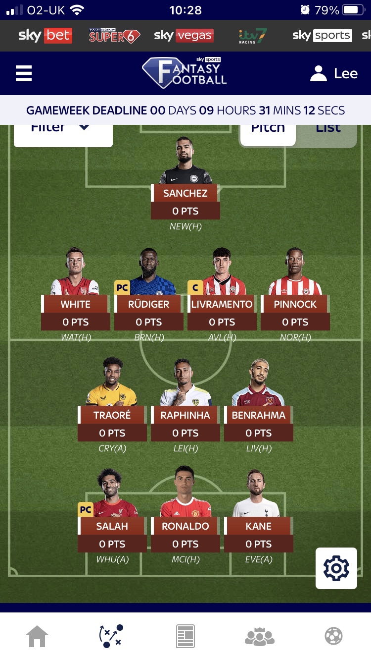 In my 6th blog at the end of august I talked about my awful start in all 5 formats https://keysersozefantasyfootball.sport.blog/2021/09/06/blog-6-trying-to-bounce-back-after-a-poor-start-in-all-5-formats/ at the end of September in my 7th blog I talked through how good progress had been made (478k total place rises across the 5 formats) https://keysersozefantasyfootball.sport.blog/2021/10/11/blog-7-progress-is-slowly-being-made/ This time at the end of October my ranks are largely the same (3.4K total place rises across the 5 formats with rises in just 2 games) The good news is I’m slightly ahead of the pack with wildcards to use in both fanteam and FPL, and quite high transfers left in sky and telegraph, with no major surgery needed in sun. (Note all 5 teams below are my best ranked team in each format)