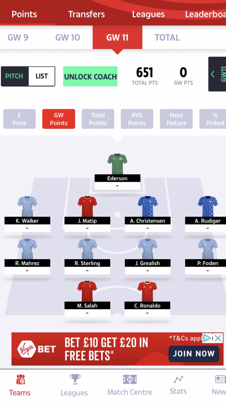 Dream team – rank 21k- drop of 500 places over the month. no transfers planned straight away. I need to keep an eye on the matip situation, and might have to accept Walker won’t play this week. I ideally will want lukaku back in after the break (but can only afford with Foden or mahrez going out). I have made various big mistakes with this team- I brought Christenson in a week later than planned costing me 26 points, transferred benrahma out (owned him for 2 weeks and got 0 points) picking KDB over Foden (costing me 25 points) Man City going out the league cup wasn’t ideal but at least that isn’t until 20/12.